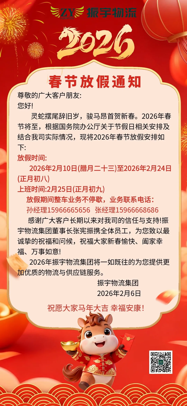 2026年振宇物流集團將一如既往的為您提供更加優(yōu)質(zhì)的物流與供應鏈服務。
